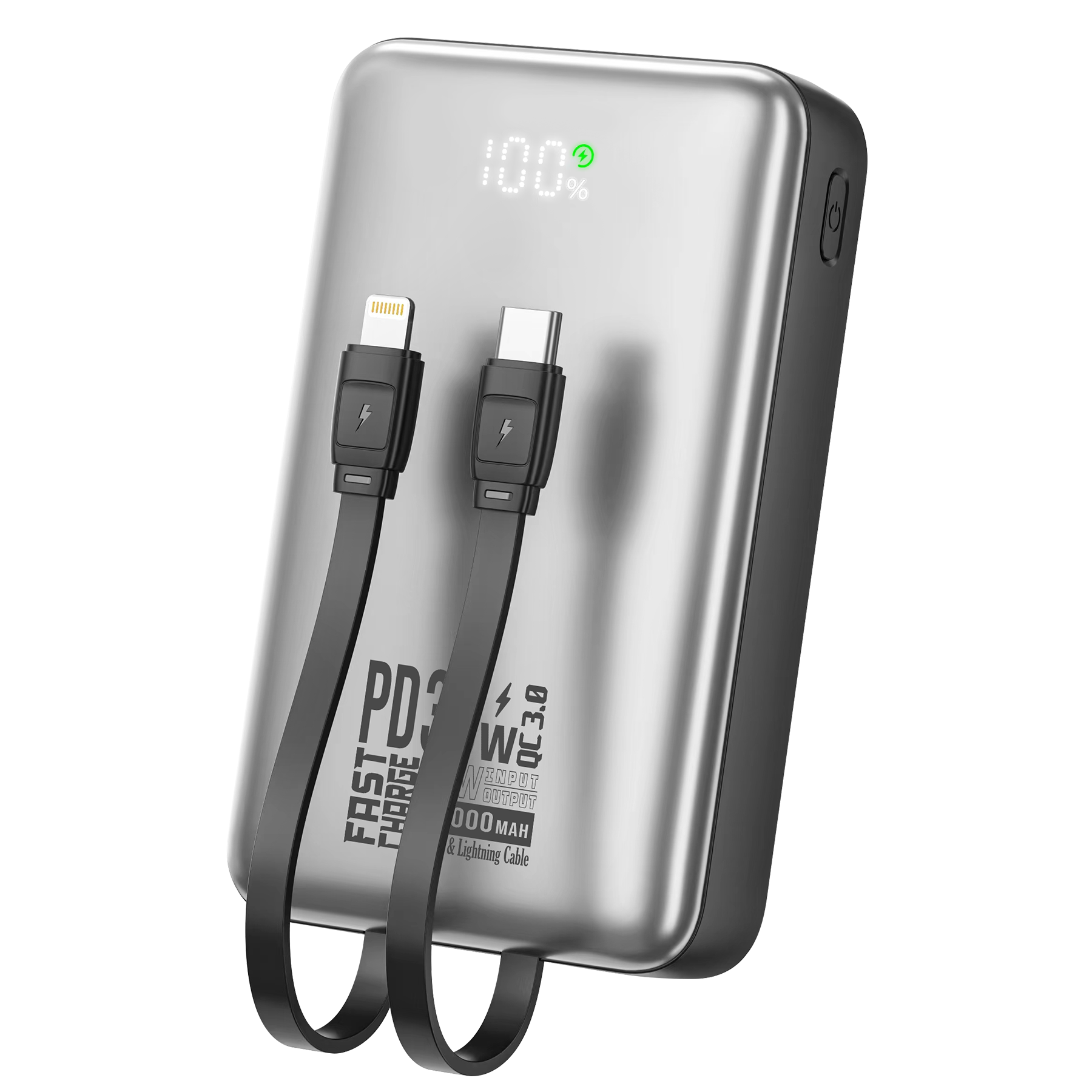 CLiPtec M-series MPB313W 10000mAh 3 in1 PD20W+15W Wireless Fast Charging Power bank with Type C and Lightning cable is an ultimate feature with 4 outputs Type C port, Type C cable, USB A output and 15W wireless output. This power bank packs a powerful 10000mAh capacity into a remarkably compact and lightweight design. Measuring just 110 x 70.3x 17.6mm and weighing only 217g, it's the perfect portable charger to take anywhere and easily fit in your pocket, wallet or handbag, making it convenient to carry and charge your mobile devices.