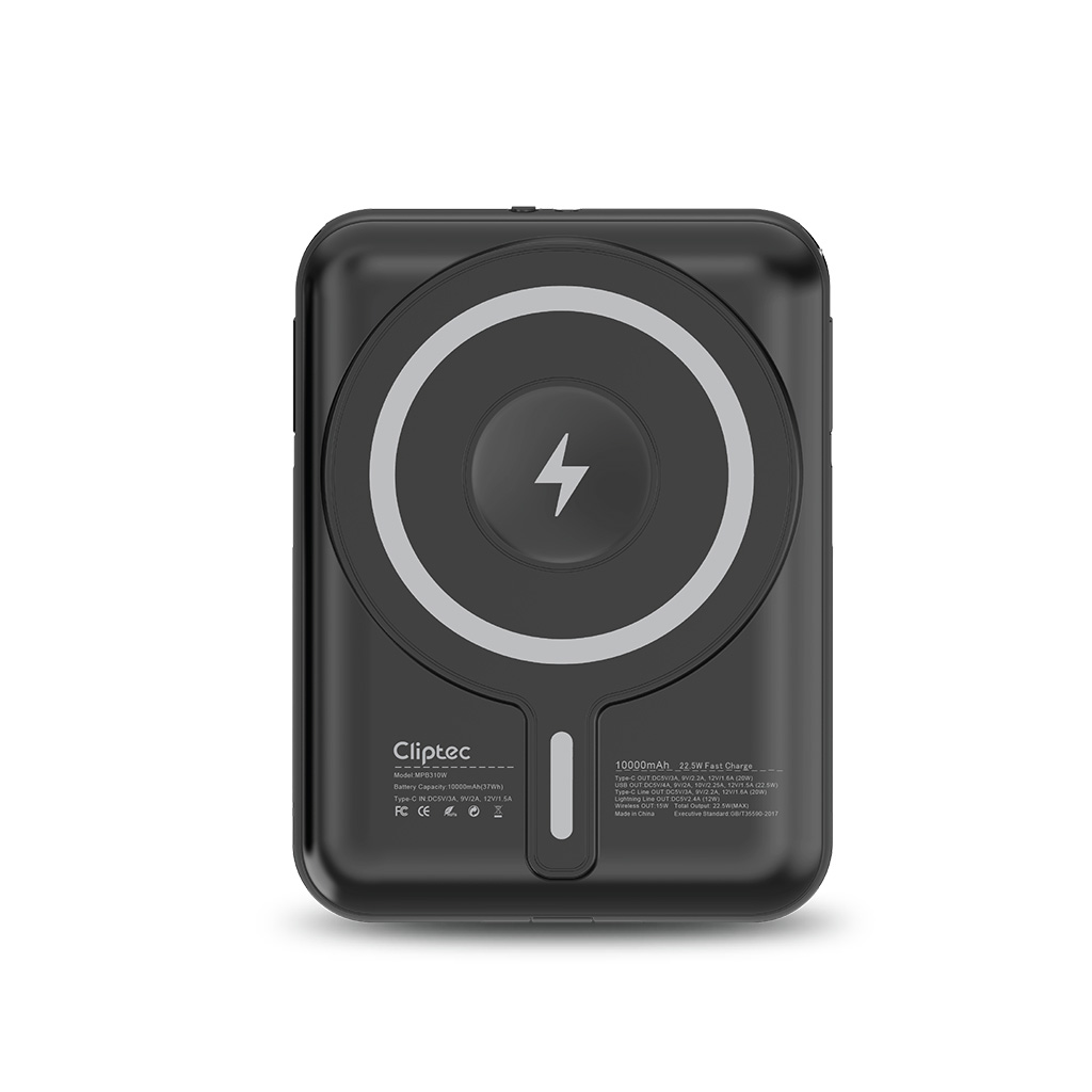 CLiPtec M-series MPB310W 10000mAh 22.5W+PD20W+15W Wireless Fast Charging Power bank with Detachable built-in Lightning and Type-C cable is an ultimate features with 4 outputs Type C, Type-C & Lightning detachable cable (Or USB- A port output) and 15W wireless output. This technology allows you to charge your smartphones and tablets at the same time. The compact and durable design makes it convenient to charge your devices while on the go. You’ll now have more power, more freedom on the traveling road and more convenience than ever before to keep your device powered and charged. MPB310W is a grade A 10000mAh Lithium-ion battery, which can prevent over charge and discharge, short circuit, over current and other abnormal conditions, bring more safety.