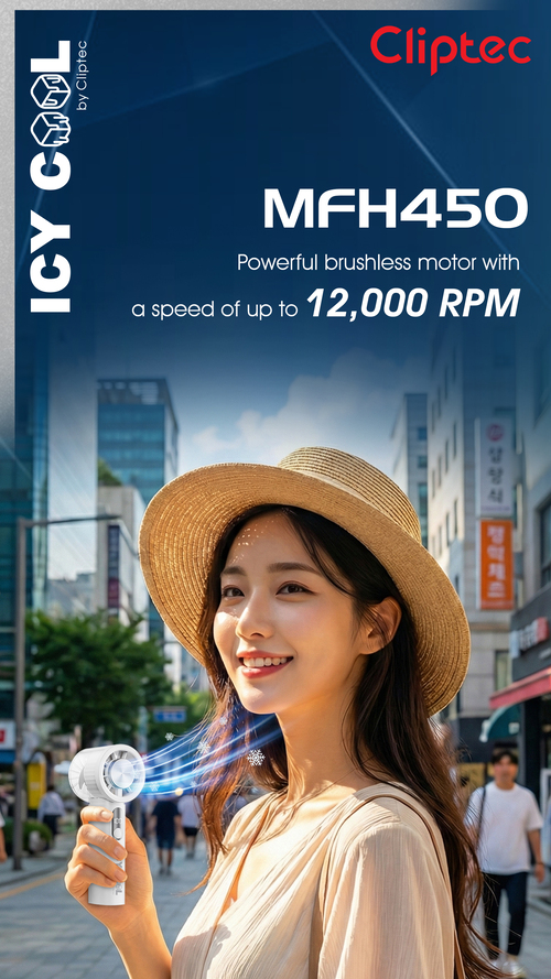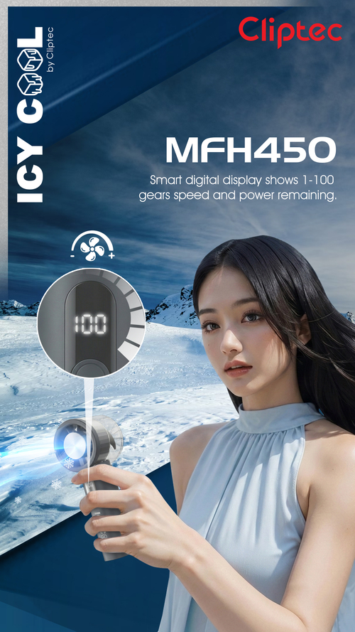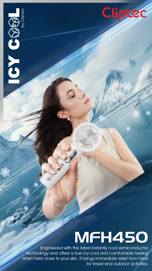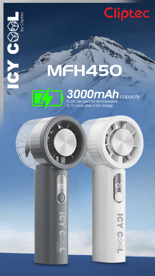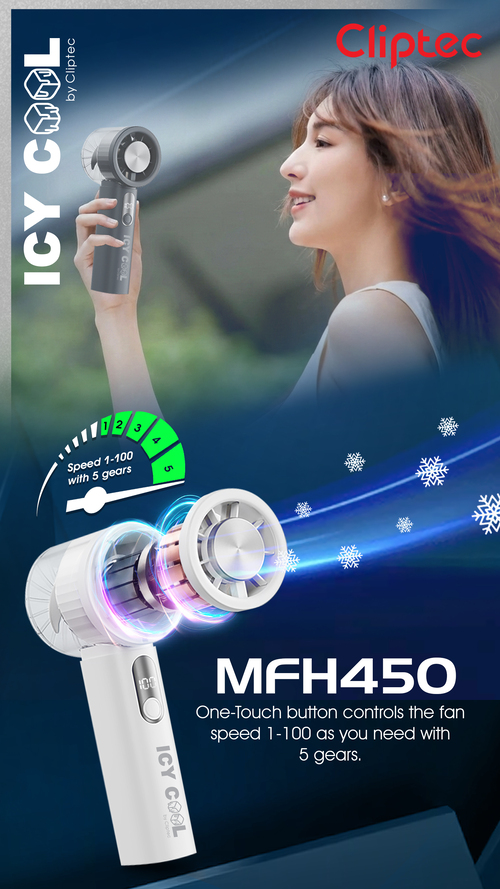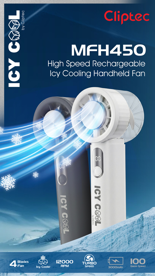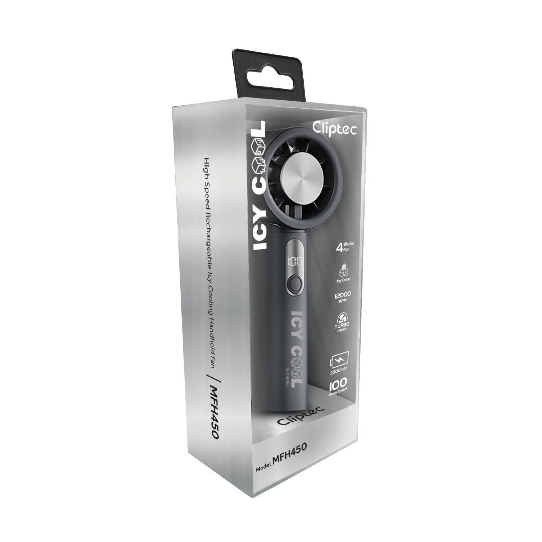 CLIPTEC MFH450 HIGH SPEED RECHARGEABLE ICY COOLING HANDHELD FAN - BLACK