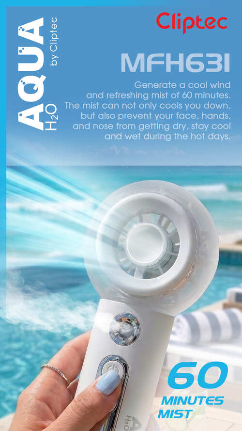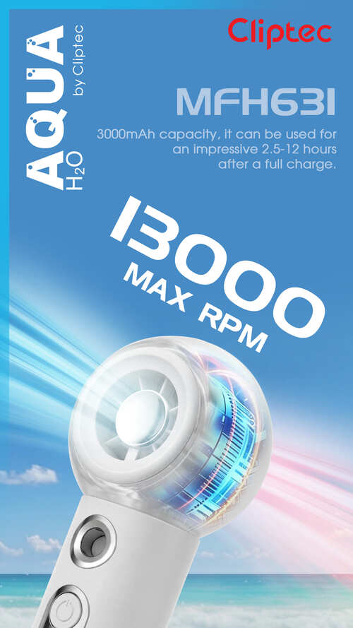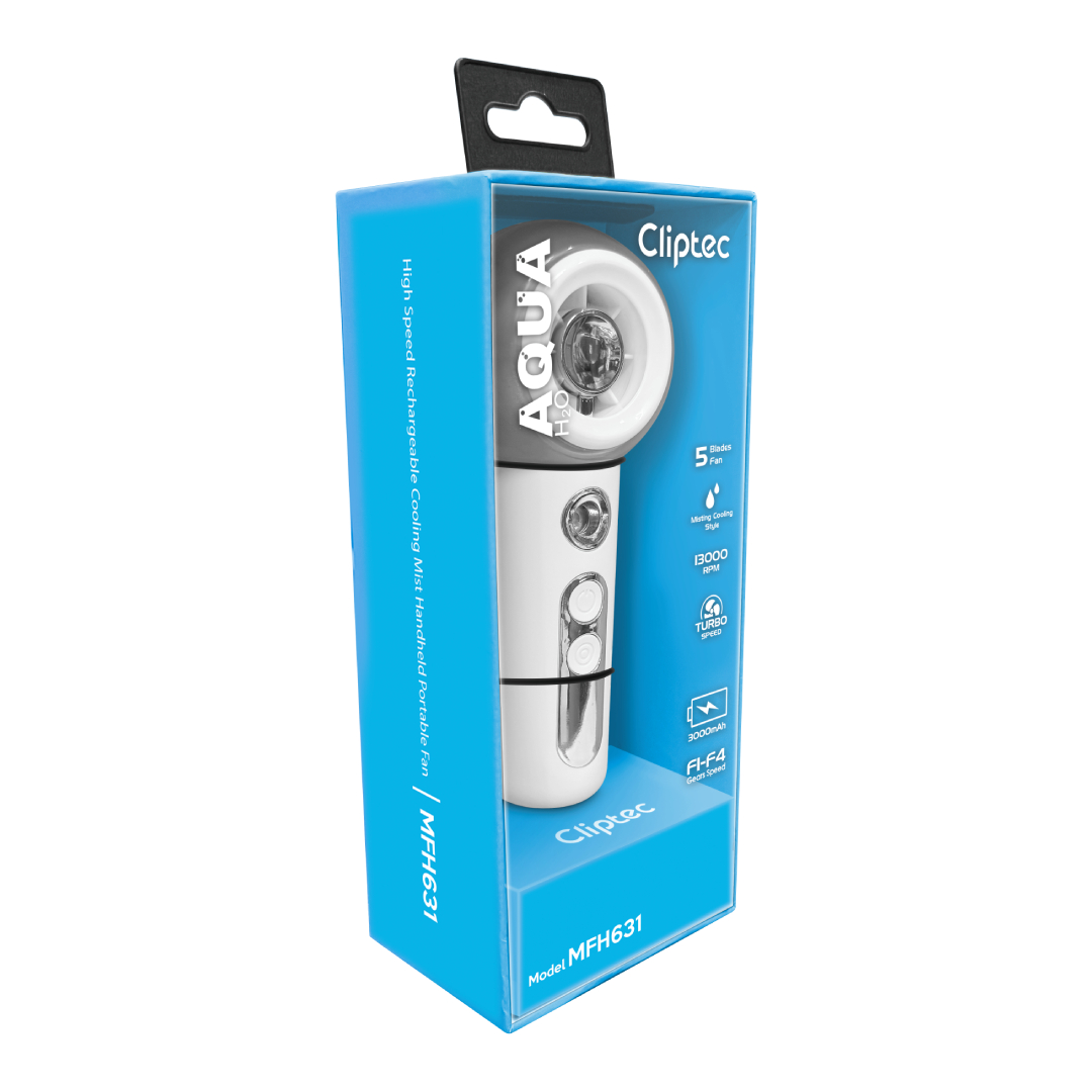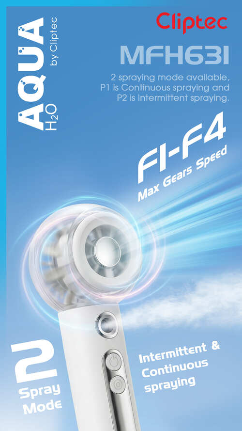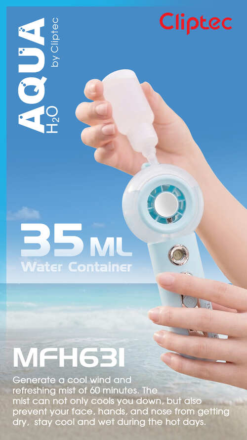 The M-Series MFH631 High speed rechargeable Cooling Mist Handheld fan is the potable fan features a 5 fan bleads and brushless motor that provides superior power and durability, greatly enhancing the product's lifespan. Powerful brushless motor with a speed of up to 13,000 RPM. This foldable turbo fan can release even more powerful wind power. Generate a cool wind and refreshing mist. The mist can not only cools you down, but also prevent your face, hands, and nose from getting dry, stay cool and wet during the hot days. Upgraded: Spraying effect is 100% enhanced, 35ml water tank with sprayable for 60 minutes.