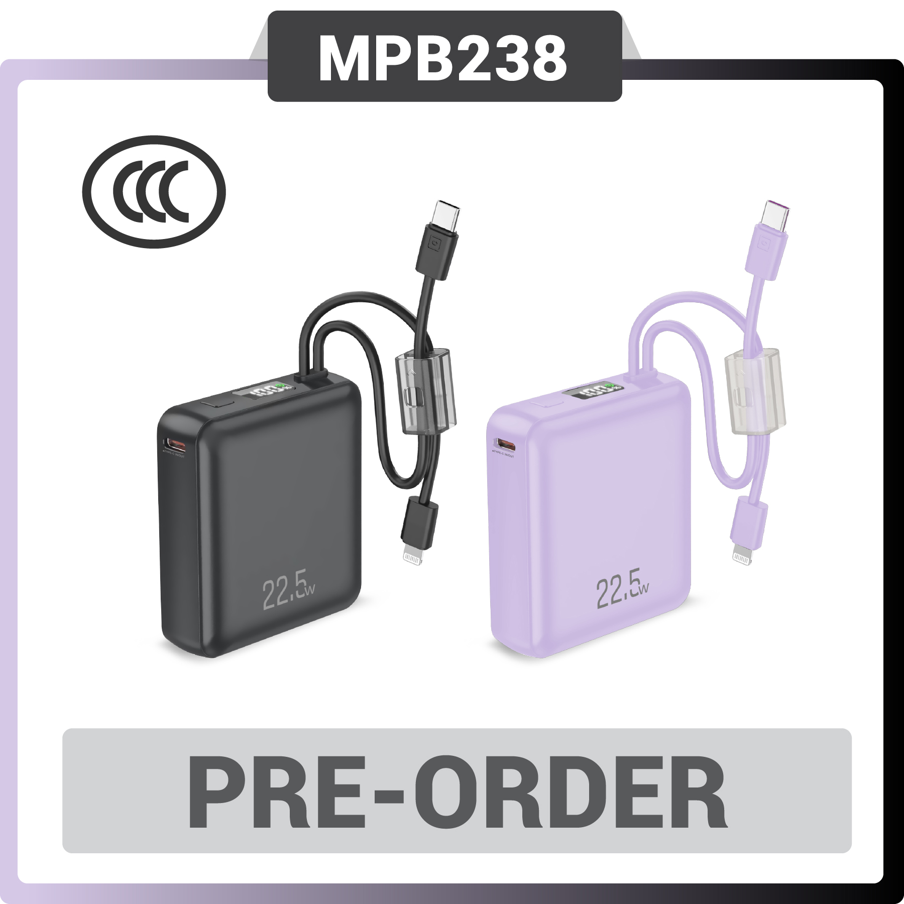 CLiPtec M-series MPB237 10000mAh PD35W Fast Charging Power bank with Type C and lightning cable is a complete with PD35W Type C port, Type C cable and USB-A 22.5W high power output technology allows you to charge your smartphones and tablet at the same time . The compact and durable design makes it convenient to charge your devices while on the go. You’ll now have more power, more freedom on the traveling road and more convenience than ever before to keep your device powered and charged. MPB237 is a grade 10000mAh lithium Polymer battery, which can prevent over charge and discharge, short circuit, over current and other abnormal conditions, bring more safety. The Type C cable and Type C port is a two-way charging technology which allows to charge in and charge out functions.
