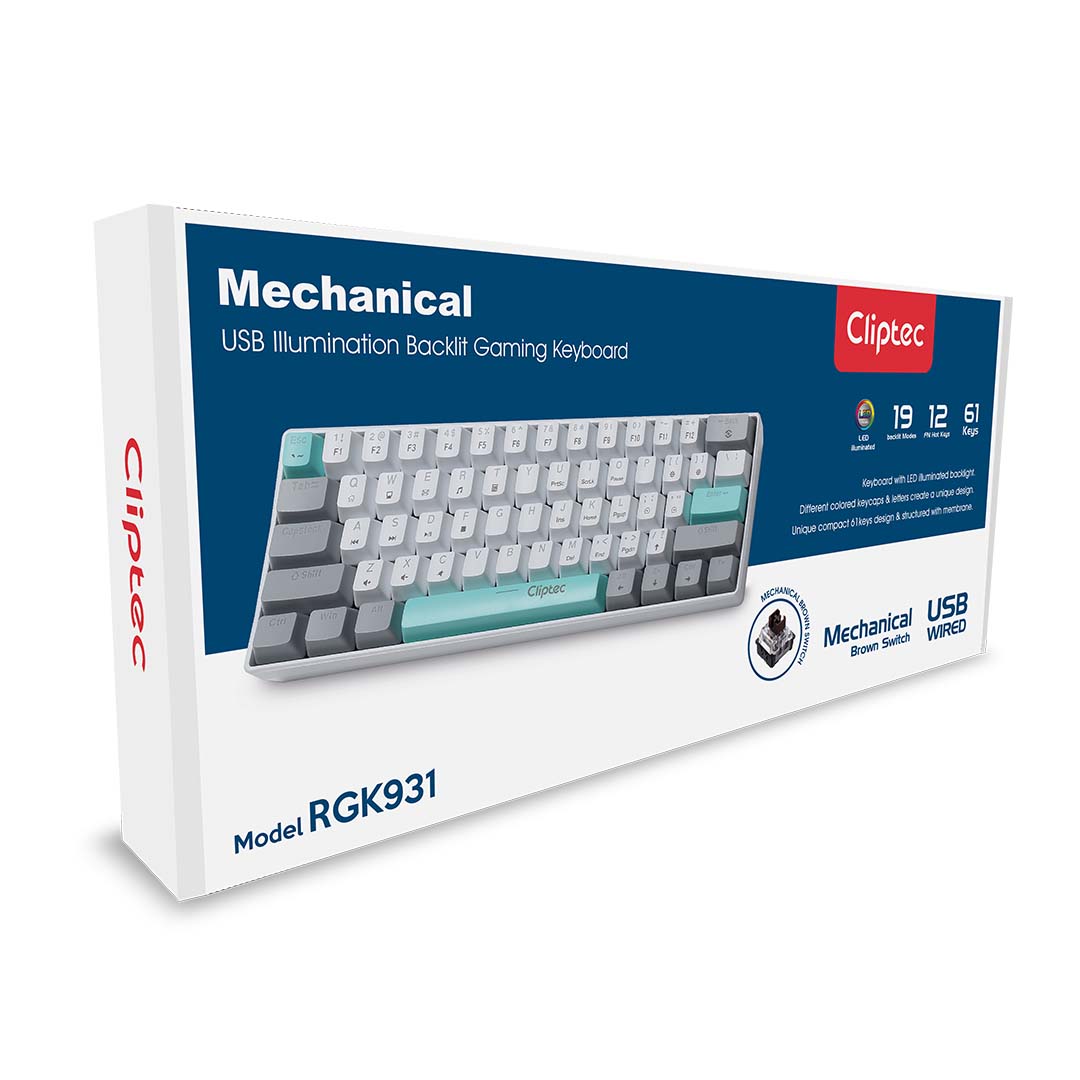 CLiPtec RGK931 USB Mechanical Illuminated Mechanical Gaming Keyboard – Attack61 is a Mechanical gaming keyboard which combines solid profile ABS top cover finish and colourful keycaps. It is constructed with red switches with 50 million times Keystroke lifespan construction with double injection for keycap.