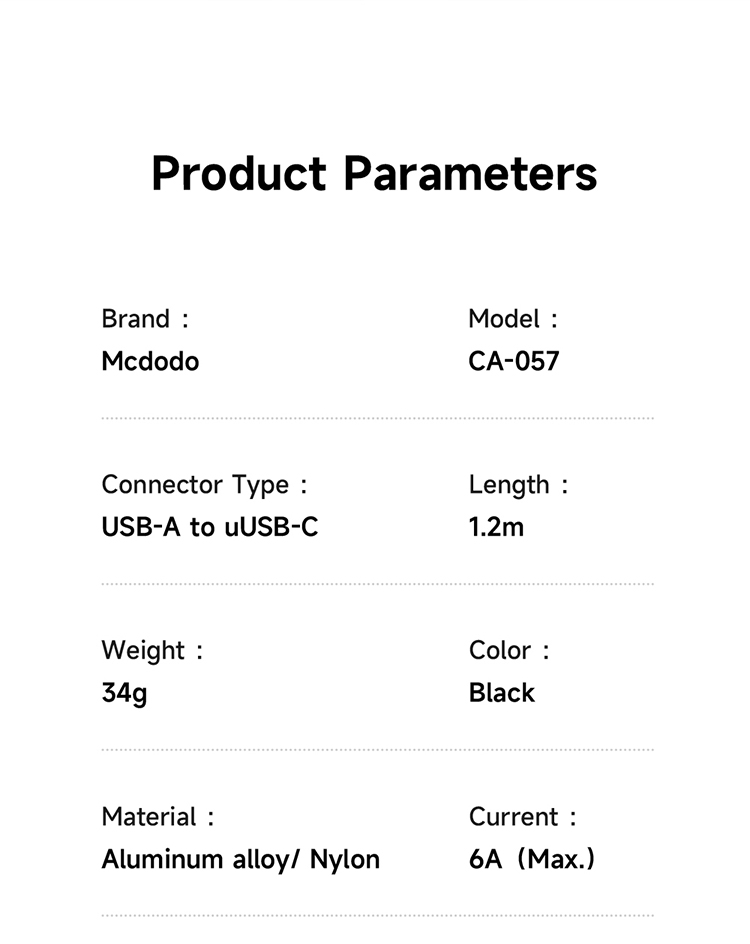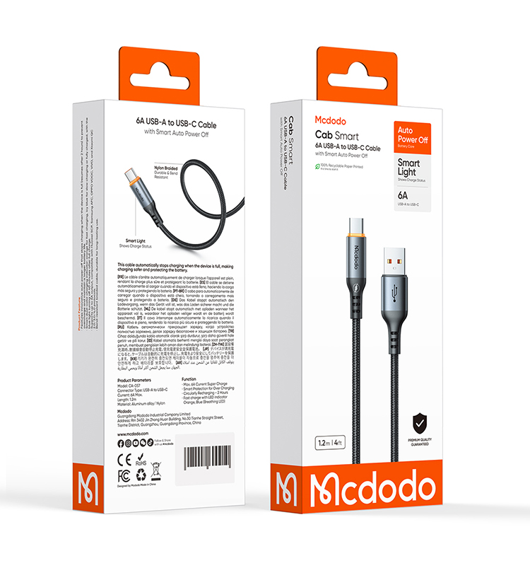 MCDODO CA0570 6A USB-A TO C AUTO POWER OFF CABLE 1.2M
