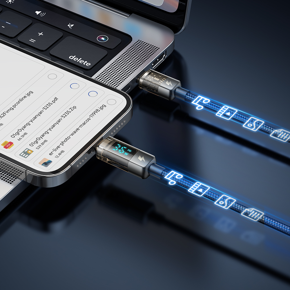 MCDODO CA360 DIGITAL PRO AUTO POWER OFF 36W TYPE-C TO LIGHTNING TRANSPARENT DATA CABLE 1.2M