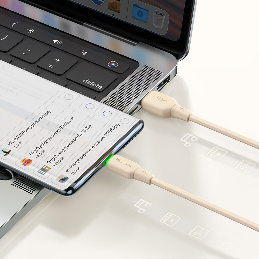 MCDODO CA4750 ALPHA SERIES TYPE-C 6A DATA CABLE WITH LED LIGHT 1.2M - BEIGE