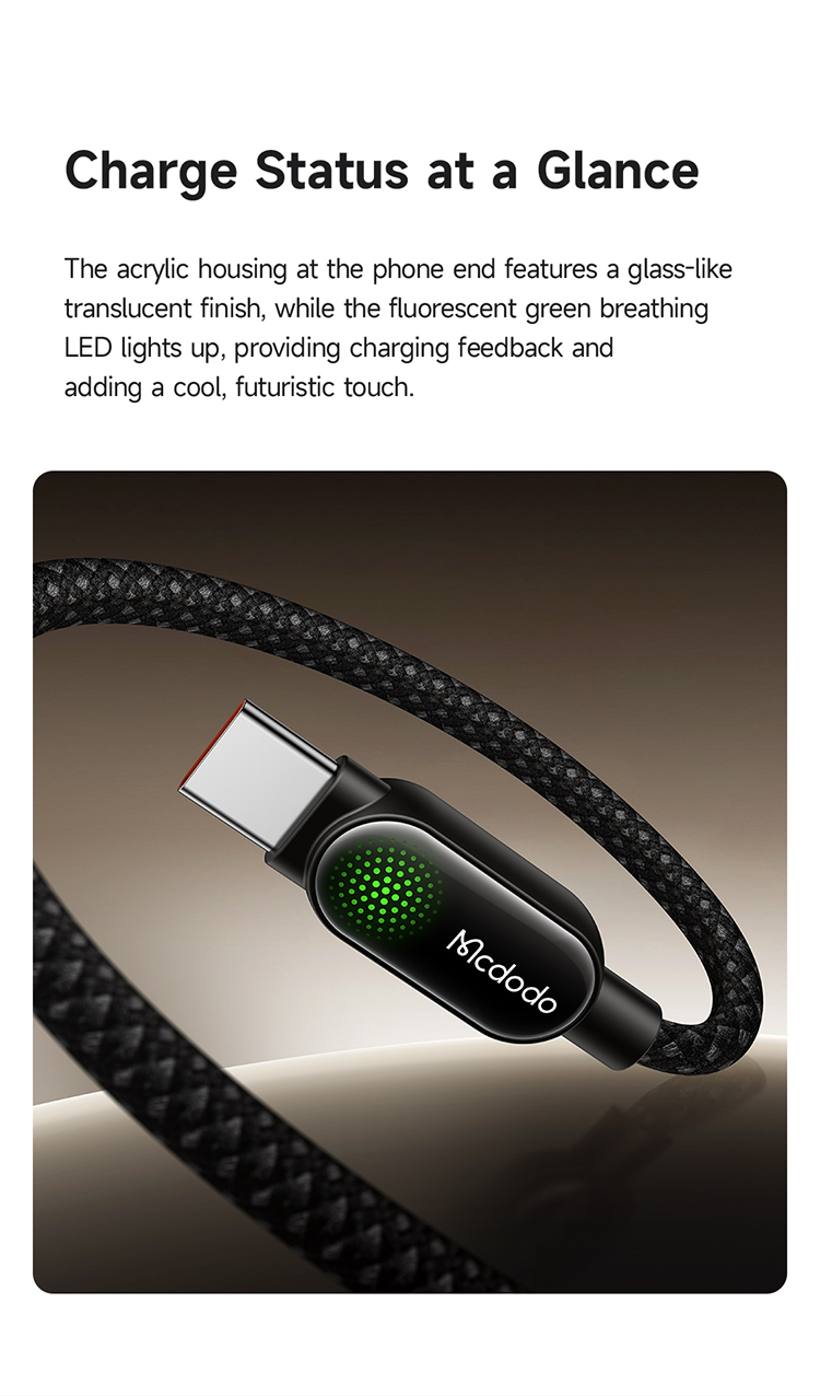MCDODO CA5620 100W USB-C TO C CABLE 1.2M WITH AMBIENT LIGHT - BLACK
