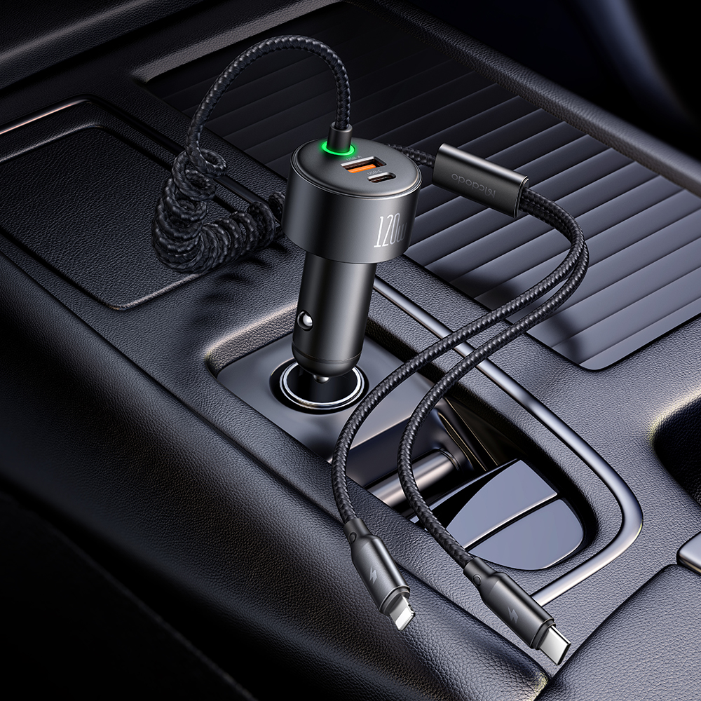 MCDODO CC0370 120W 1C+1A CAR CHARGER WITH USB-C AND LIGHTING RETRACTABLE CABLES