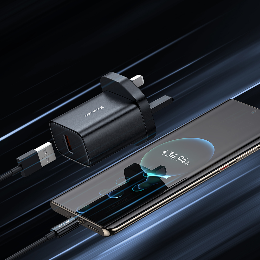 MCDODO CH458 22.5W 1A CHARGER (UK) + A TO C 1M (FULLY COMPATIBLE FAST CHARGING) - BLACK