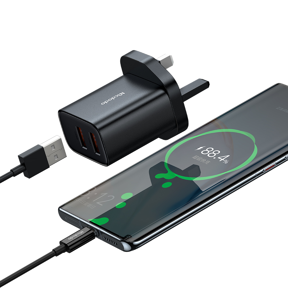 MCDODO CH4793 12W 2A CHARGER (UK) + A TO M CABLE 1M - BLACK
