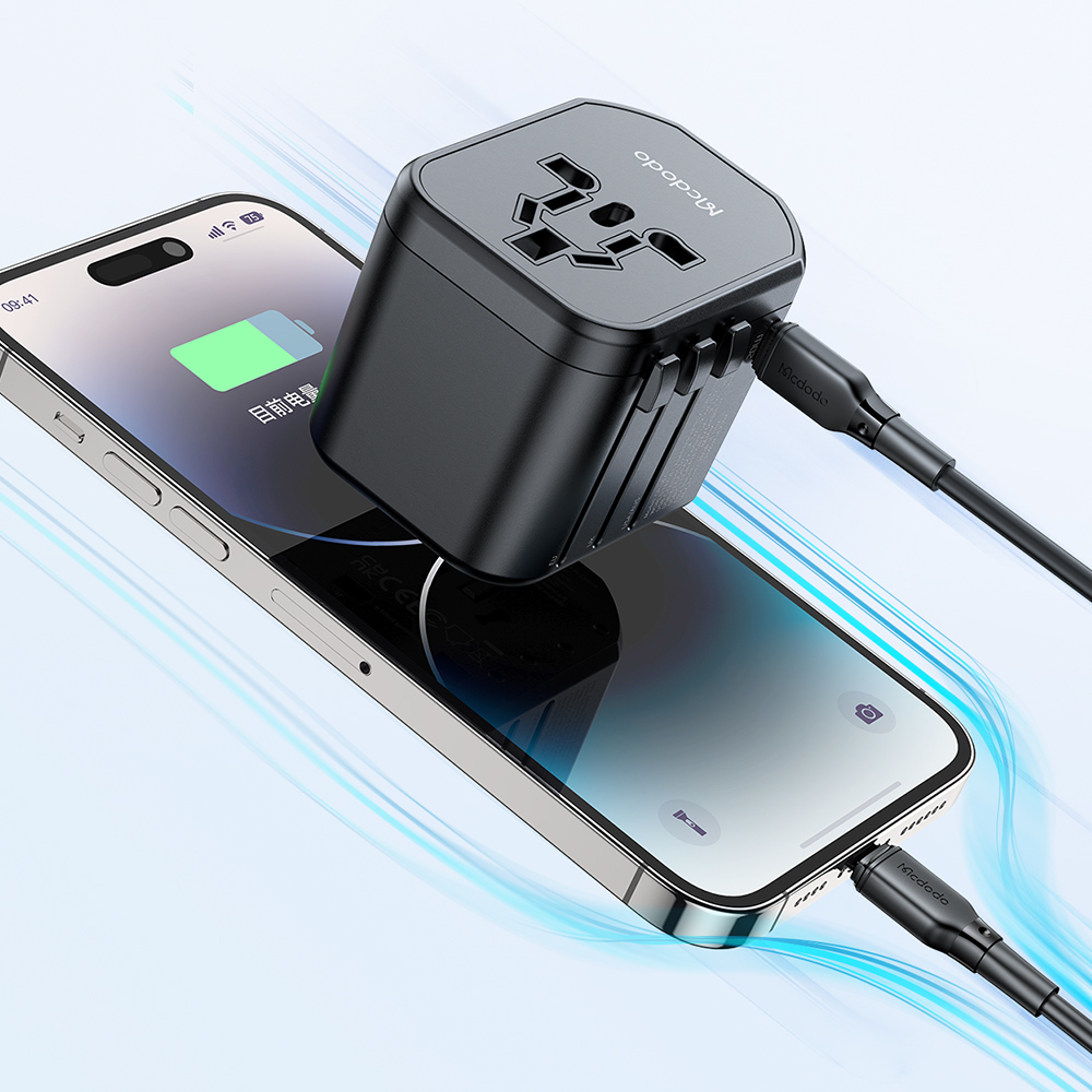 MCDODO CP3471 G1 SERIES 20W PD FAST CHARGING UNIVERSAL TRAVEL ADAPTER - BLACK