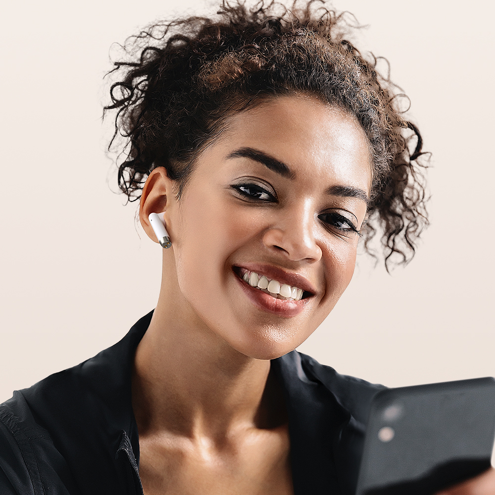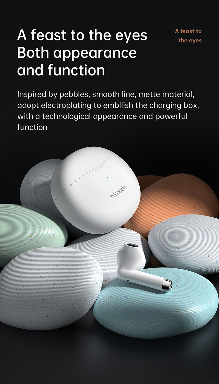Inspired by pebbles, smooth line, matte material, adopt electroplating to embellish the charging box, with a technological appearance and powerful function