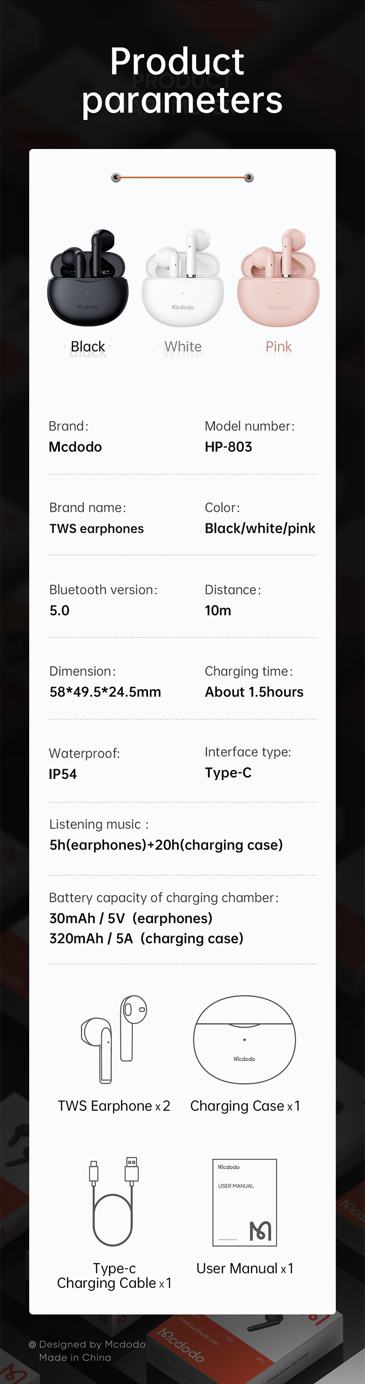 Mcdodo HP-803 B1 Series TWS Earphone