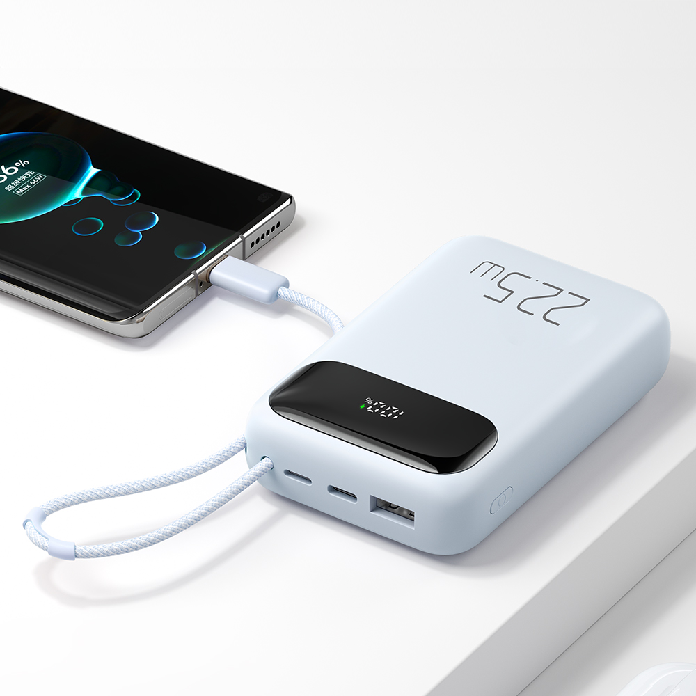 MCDODO MC3244 22.5W PD+QC 10000MAH POWER BANK BUILT-IN CABLE W DIGITAL DISPLAY (TYPE-C) - BLUE