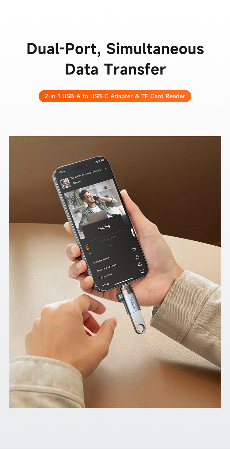 MCDODO OT760 2-IN-1 USB-A TO USB-C TRANSFER ADAPTER BUILT-IN TF CARD READER WITH LANYARD