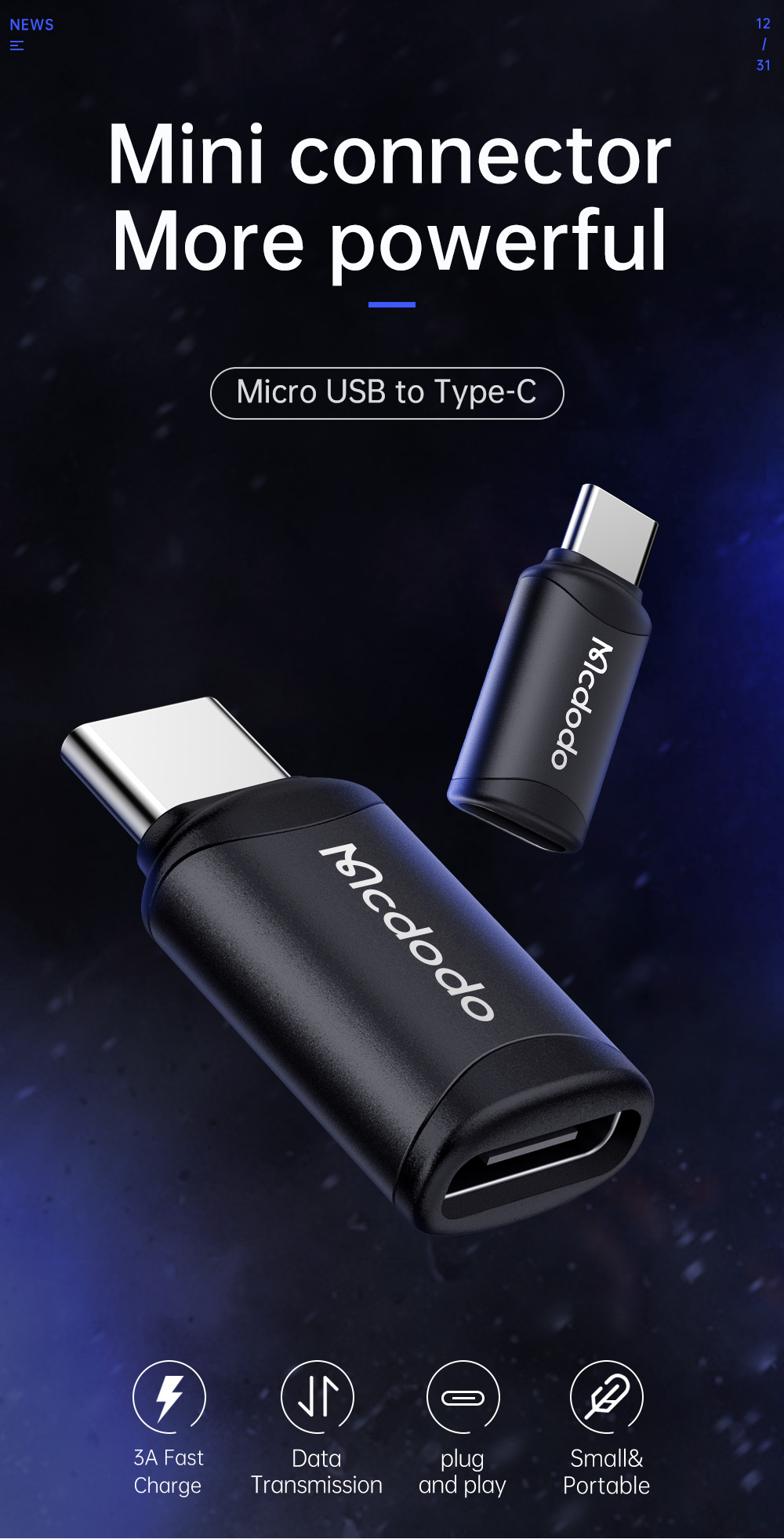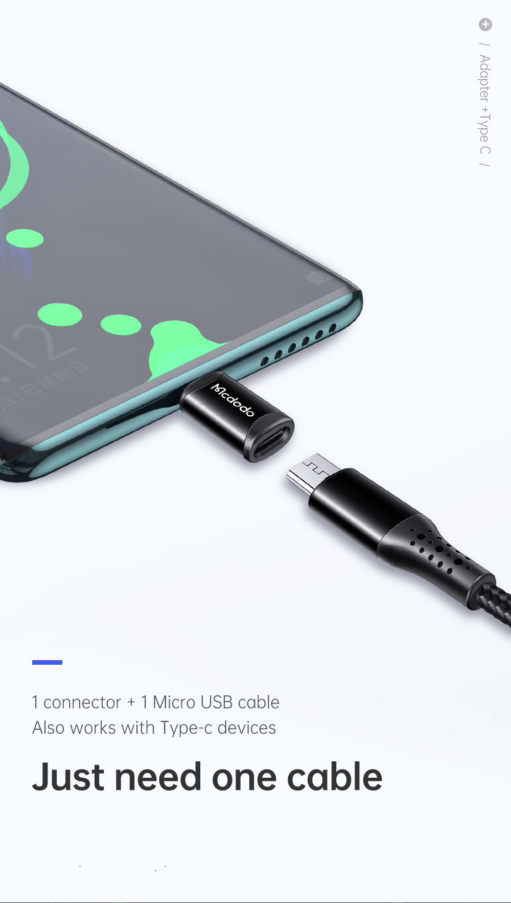 1 connector + 1 Micro USB cable, also works with Type-C devices