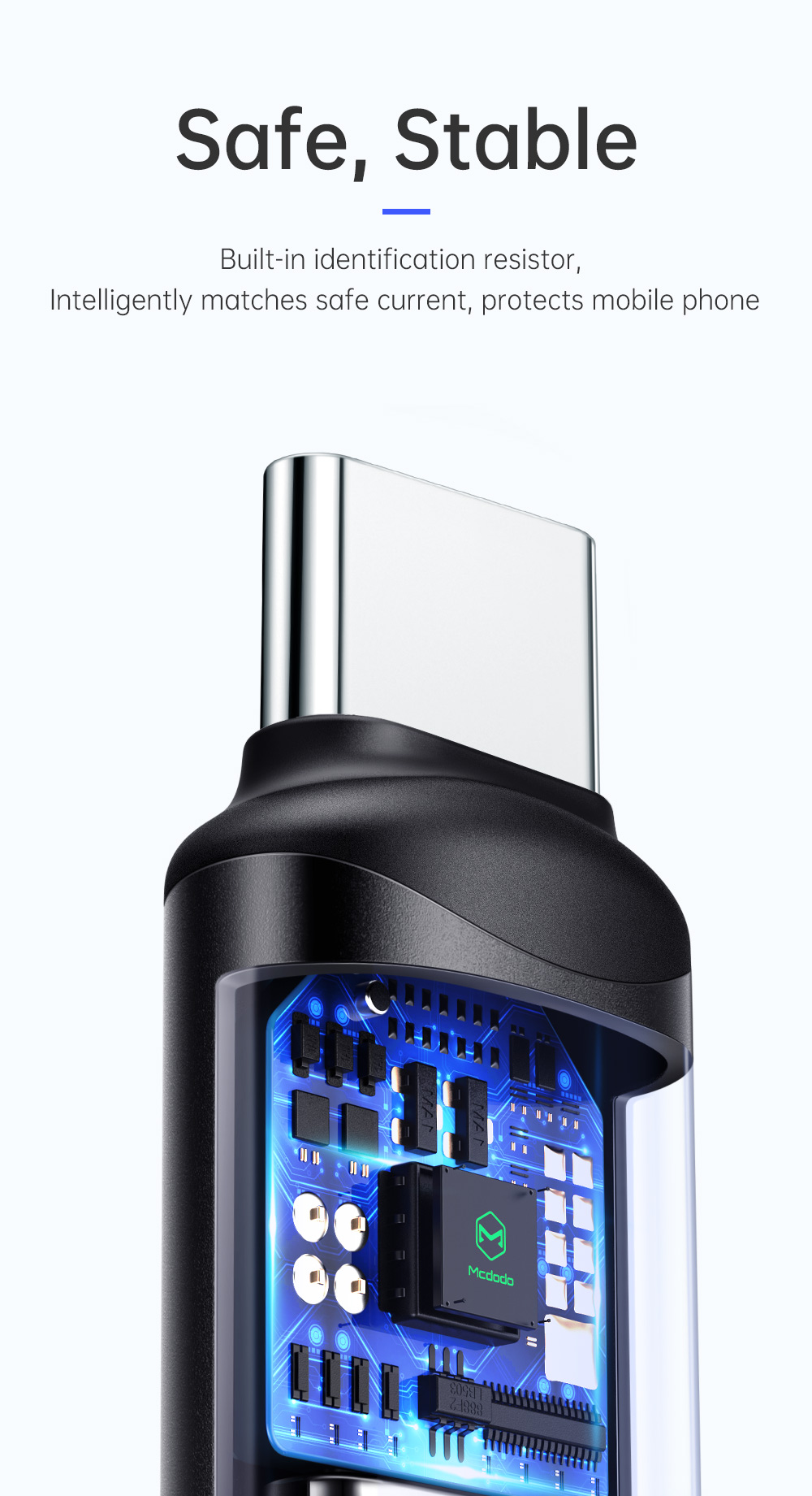 Built-in identification resistor intelligently matches safe current, protects mobile phone