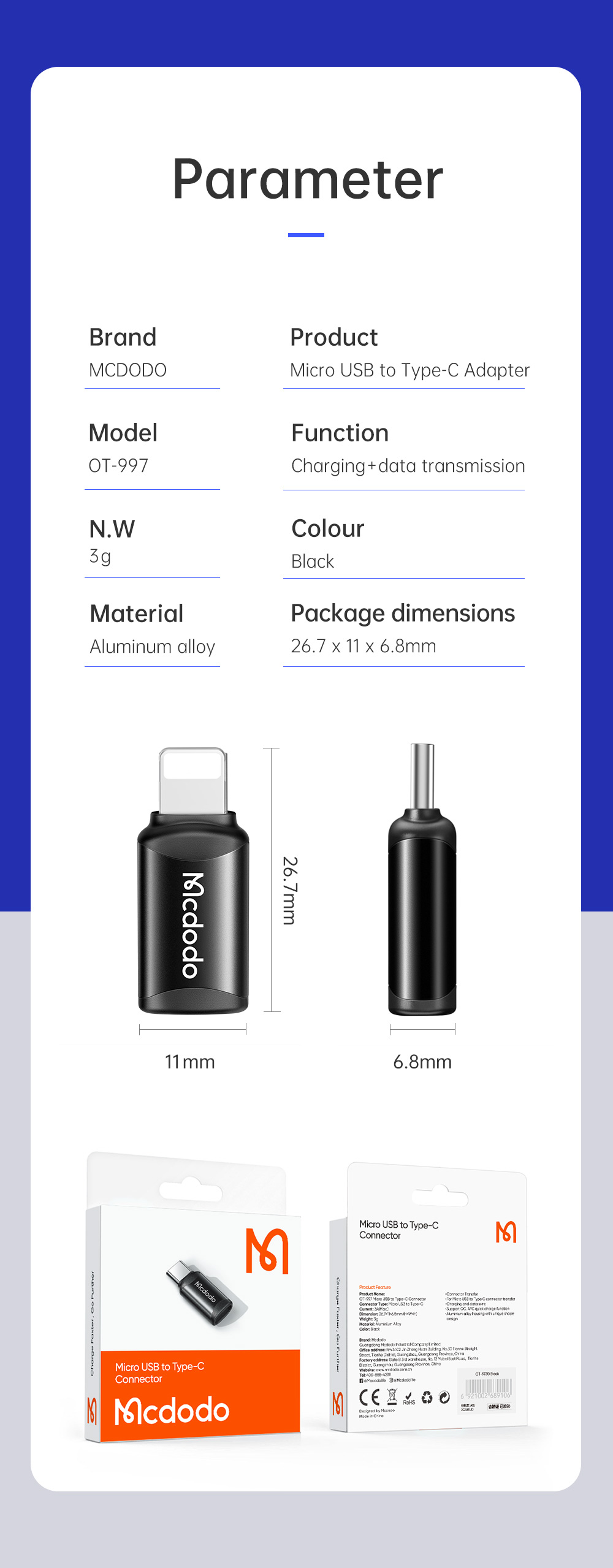Micro USB to Type-C OTG Adapter OT997