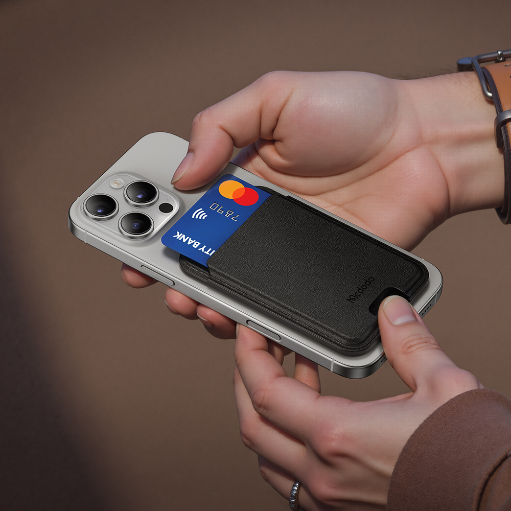 MCDODO WH7920 LEATHER MAGNETIC CARD HOLDER WITH 3-CARD CAPACITY - BLACK