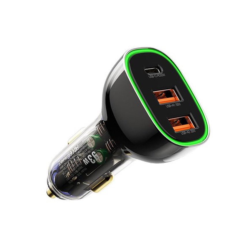 RECCI RCC-N18 93W PD3.0+QC3.0 TRANSPARENT CAR CHARGER WITH LED - BLACK