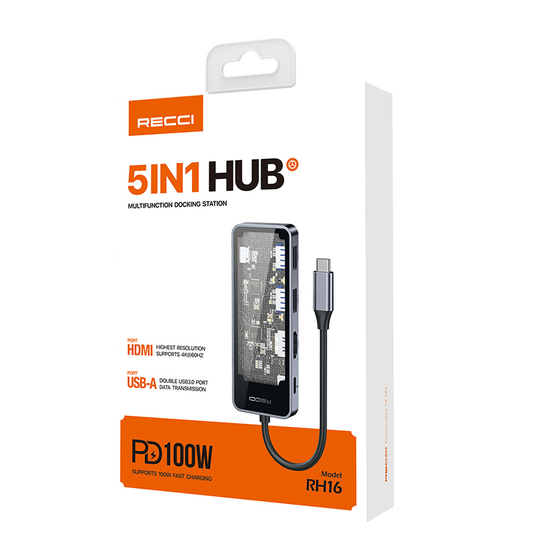 RECCI RH16 PD100W 5 IN 1 TYPE-C HUB (TRANSPARENT)