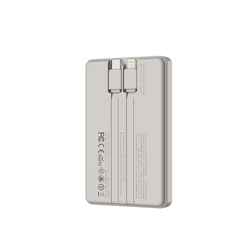 RECCI RPB-P40 22.5W + PD20W POWER BANK 10000MAH (BUILT-IN TYPE-C + LIGHTNING CABLE) - GREY